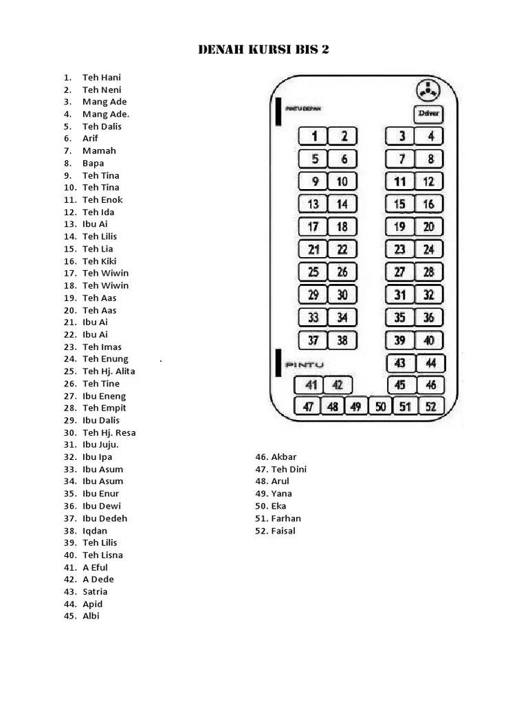 Download now denah tempat duduk bus besar seat 2 3 59 kursi